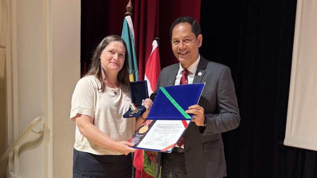 Durante o evento, a Auditora do Estado Luciana Bernieri recebeu a Medalha de Mérito Funcional Alice Guilhon Gonzaga Petrelli, concedida a servidores que se destacam pela trajetória exemplar no serviço público. Bernieri atuou em diferentes áreas da CGE, incluindo Corregedoria, Ouvidoria e Auditoria-Geral. A honraria foi entregue pelo Controlador-Geral Freibergue Rubem do Nascimento.